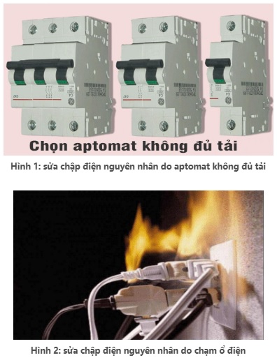 - Tình trạng nhảy Aptomat (Cầu dao) do Aptomat không đủ tải, dòng cắt hoặc đã hư hỏng. Các thiết bị Aptomat có chỉ số nhỏ: 16A,20 A, 30 A, 42 A… sẽ không đủ tải để sử dụng cho một tầng hay toàn bộ căn nhà, nhà hàng,khách sạn… với rất nhiều các thiết bị có công suất lớn như điều hòa, tủ lạnh ,lò vi sóng, bếp hồng ngoại… có thể gây quá tải,gây nên sự cố điện.